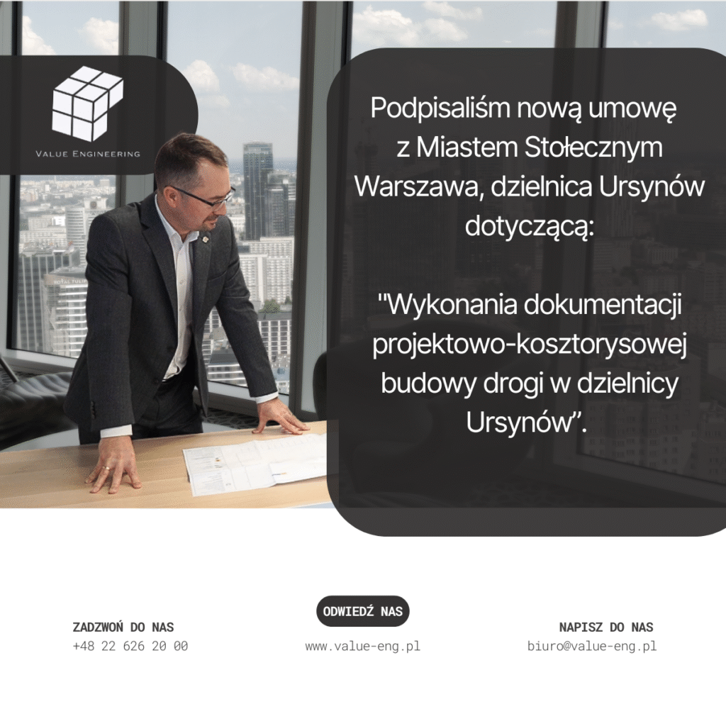 Mamy świetną informację, nasze biuro projektowe Value Engineering podpisało właśnie nową umowę z Miastem Stołecznym Warszawa, dzielnica Ursynów.